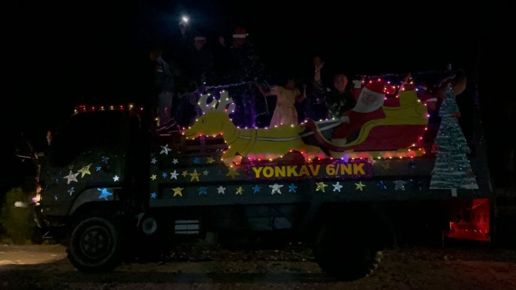 Berikan Suasana Berbeda, Satgas Yonkav 6/Naga Karimata Sulap Truck Dinas Menjadi Kereta Santa Claus