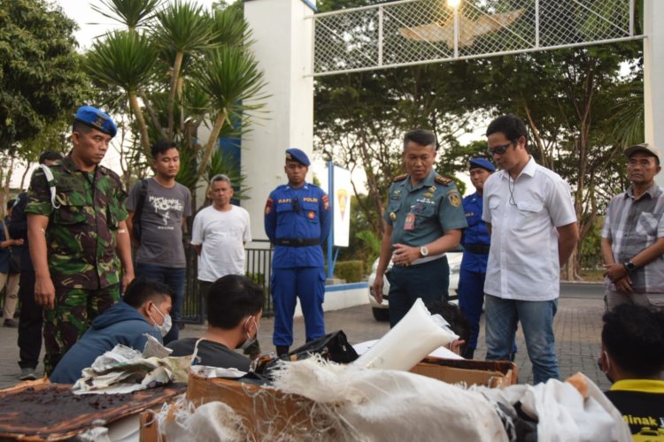 LINTASTIMURMEDIA.COM - Jakarta - 27 September 2023,--- Pangkalan Udara TNI Angkatan Laut (Lanudal) Juanda Puspenerbal bersama Angkasa Pura I dan Stakeholder Bandara Juanda, kembali berhasil menggagalkan upaya pengiriman (BBL) ilegal dari Bandara Juanda menggunakan jasa pengiriman kargo tujuan Batam yang nilainya diperkirakan mencapai tujuh milyar rupiah, Selasa (26/09). Dalam peristiwa ini empat terduga pelaku diamankan oleh personel TNI AL.
