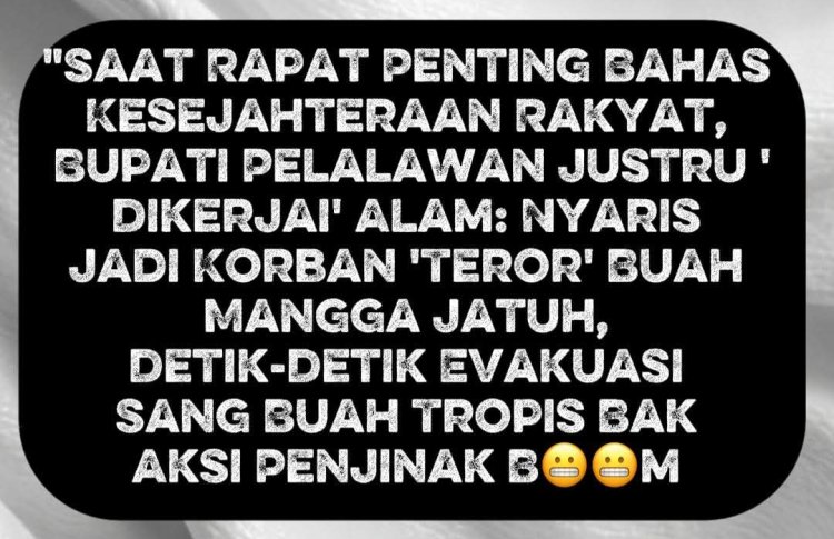 Dalam cuplikan video viral tersebut, Bupati Zukri tampak sedang menyampaikan arahan dengan gestur tangan yang bersemangat dan penuh energi. Tiba-tiba, sebuah mangga berukuran cukup besar meluncur bebas dari pohon, nyaris menghantam kepala beliau yang tengah fokus berbicara. Beruntung, buah mangga itu mendarat tepat di meja rapat di depan Bupati, menimbulkan suara pluk yang cukup mengejutkan para peserta rapat.