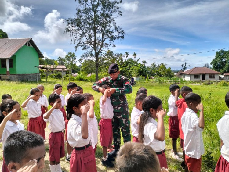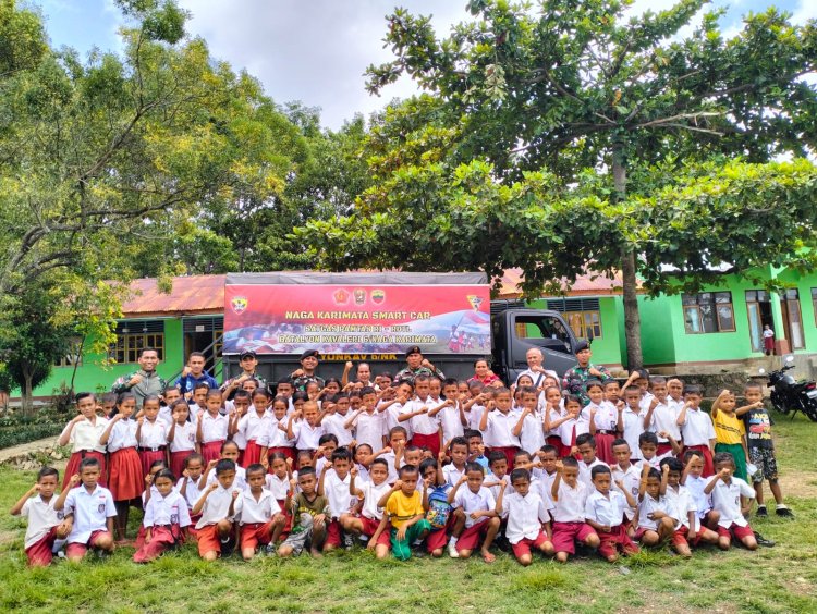 LINTASTIMURMEDIA.COM - EBAN/NTT - Naga Karimata Smart Car Satgas Yonkav 6/Naga Karimata berupaya membangkitkan semangat belajar para siswa di SD Katolik Eban 2, Desa Eban, Kec. Miomaffo Barat, Kab.TTU, Prov. NTT. (1/2/24)