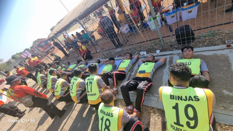 LINTASTIMURMEDIA.COM - Wonogiri - Polres Wonogiri Polda Jateng, Ratusan Personil Polres Wonogiri Polda Jawa Tengah mengikuti Tes Kesamaptaan Jasmani (TKJ) Berkala Tahun 2023 di lapangan Pringgodani Wonogiri. Senin (18/09/2023)