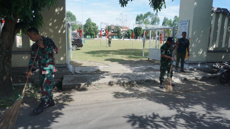 Satgas dan Warga Bersihkan Lapangan Jelang Penutupan TMMD Reguler 125 Kodim 0735/Surakarta