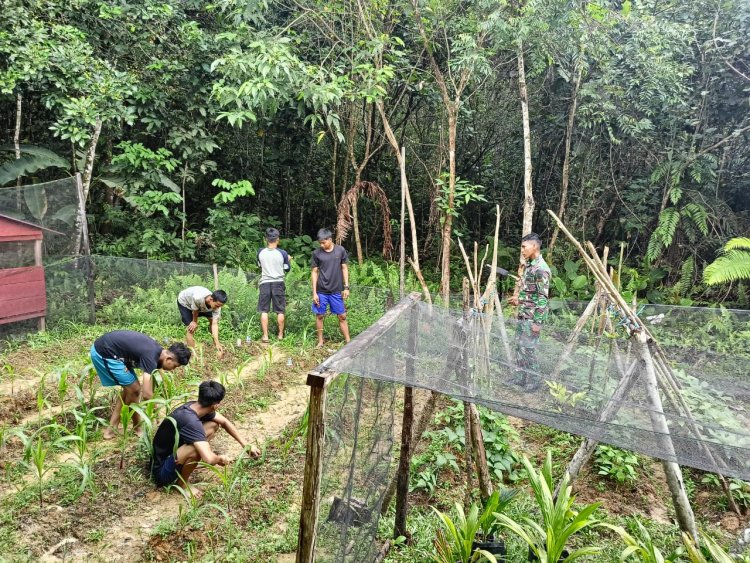 LINTASTIMURMEDIA.COM - SINTANG - Satgas Pamtas Yonzipur 5/ABW Dukung Ketahanan Pangan dengan M, Satgas Pamtas RI-Malaysia Yonzipur 5/ABW mengambil langkah proaktif dalam mendukung ketahanan pangan melalui pemanfaatan lahan pekarangan. Bersama para remaja rumah singgah, Satgas Yonzipur 5/ABW melakukan kegiatan berkebun dengan menanam jagung di Desa Senaning, Ketungau Hulu, Kabupaten Sintang, pada Sabtu (12/10/2024).