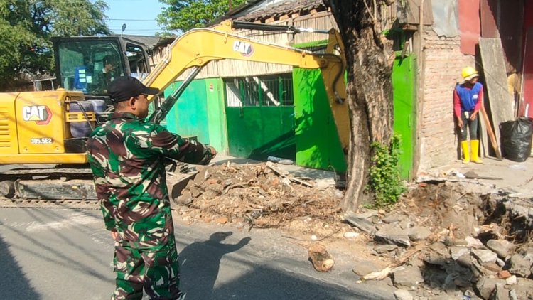 Satgas TMMD Kodim 0735 Surakarta Gunakan Eskavator Bersihkan Jalur Saluran Air