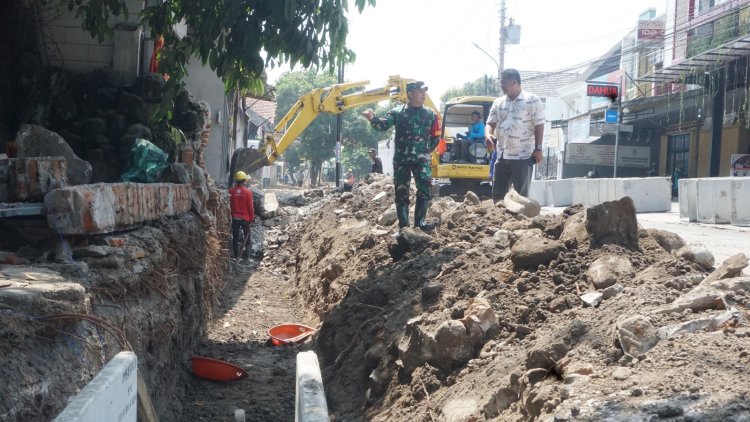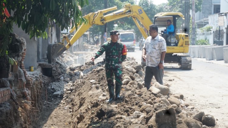 Satgas TMMD ke-125 Kodim 0735/Surakarta kerahkan alat berat untuk percepatan perbaikan saluran air 586 meter di Karangasem, Laweyan, Surakarta.